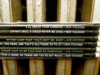 But in the end there's just too much to say, and it's all too obvious. Fish in a barrel, really. So I'll just let this $9.95 Sid Vicious pencil set say the rest. (I did buy them; they were too ghastly not to.)